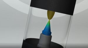 ・ミキシングチェンバーとマーカーペンを接触させて液を薄めていきます。