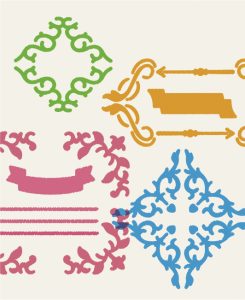 装飾や特別感を出すための飾り罫やフレームを集めたテンプレート定規です。